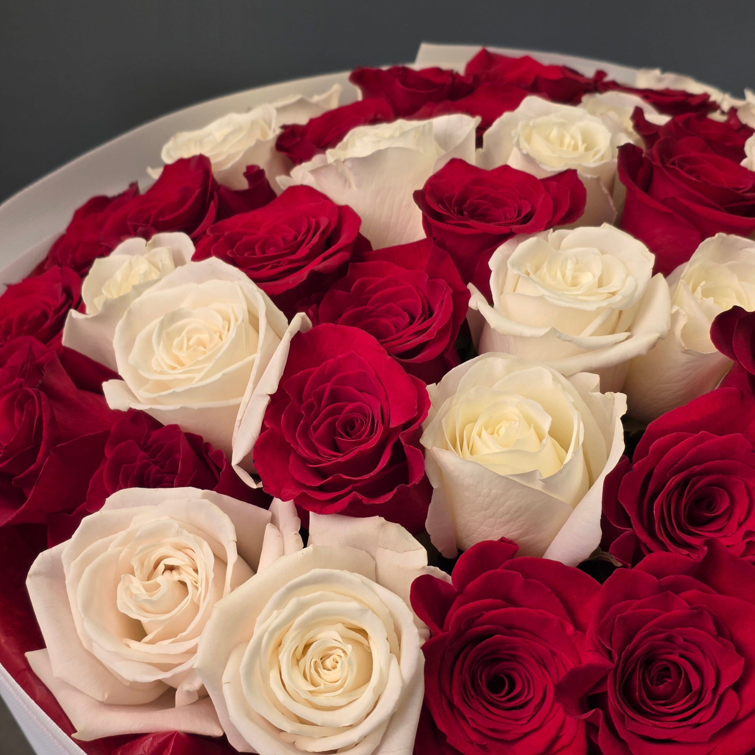 Red and white rose bouquet in Oakville and Mississauga by BLOOMSI brings together timeless romance and refined elegance. Premium red and white roses create a beautiful contrast that symbolizes love, purity, and sophistication.